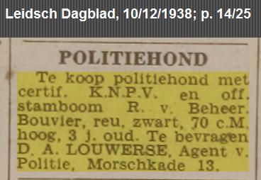 Huwelijk 2 december 1936 in Leiden met Dommis Abraham Louwerse, politie-agent (zie advertentie, met foutje)