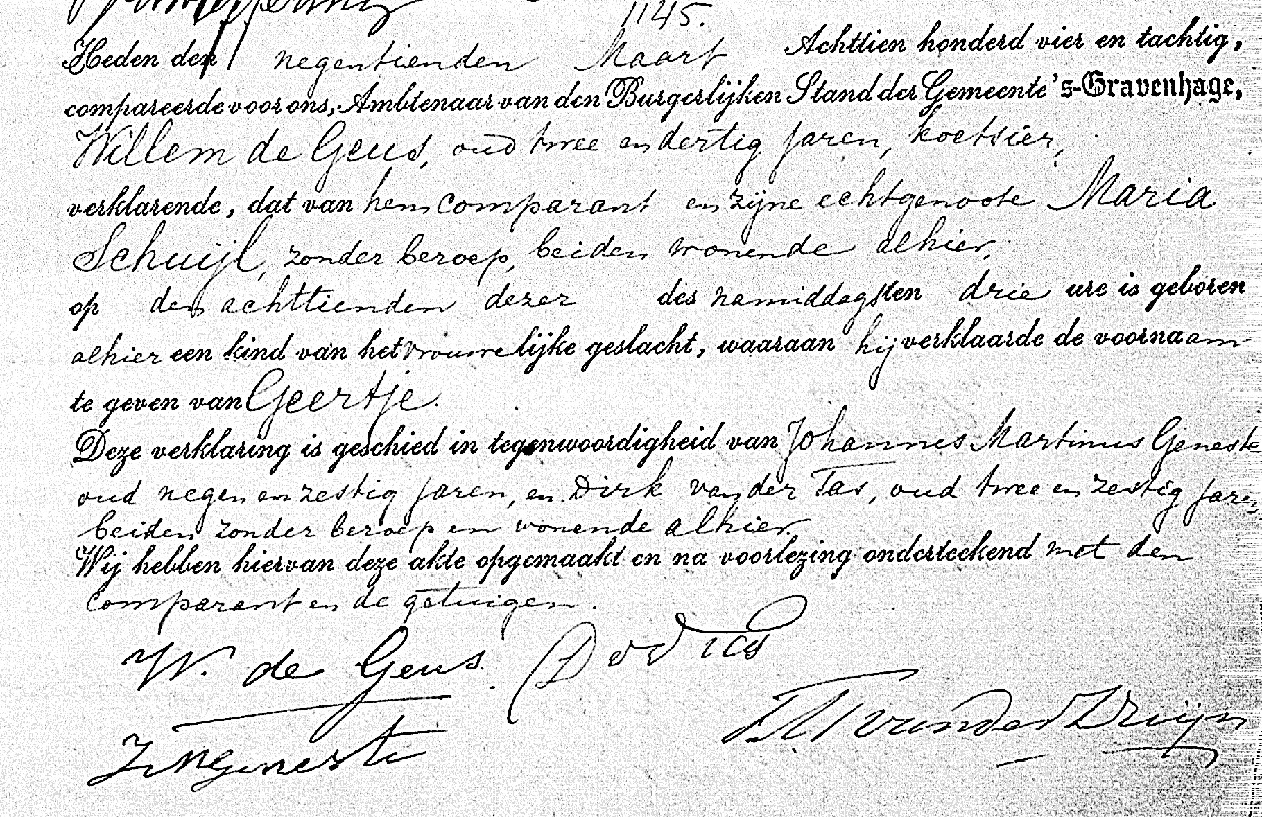 - Geertje de Geus (geb.18-3-1884 (akte) te 's Gravenhage), op .................in ................ getrouwd met ............................ (geboren .................... te .....................), beroep ...........